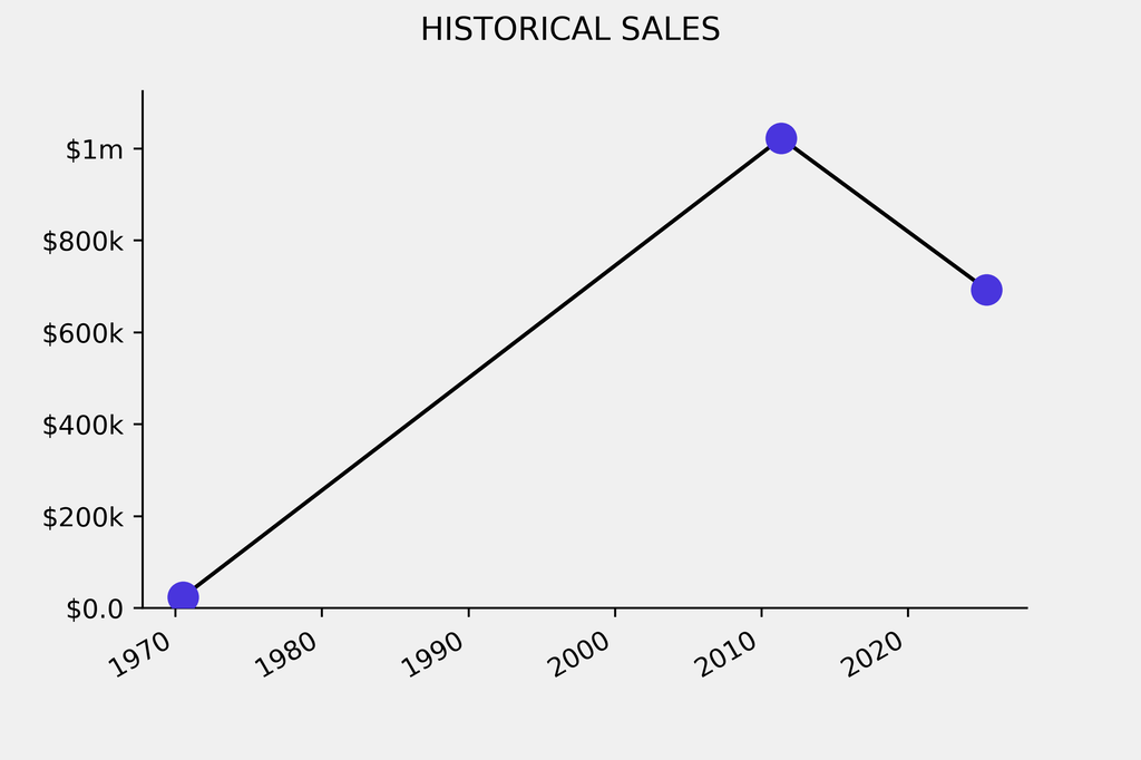 The sale was below the previous auction result by $329,500, realizing a 32% negative return. It last sold at auction in 2011 for $1.02m at Christie's.