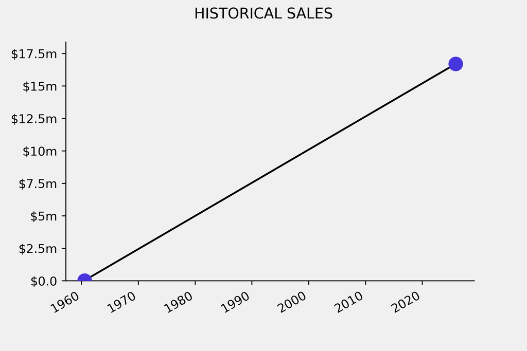 The sale beat the previous auction result for this work by $16.69m, equivalent to an annualized return of 10%. It last sold at auction in 1960 for $22,400 at Sotheby's.
