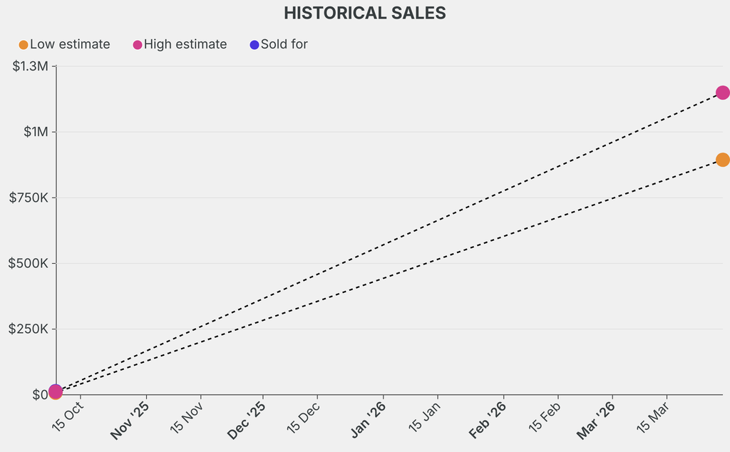 It last sold at auction in 2025 for $14,000 at Christie's. The current low estimate is 11077% higher than its previous low estimate of $8,000.