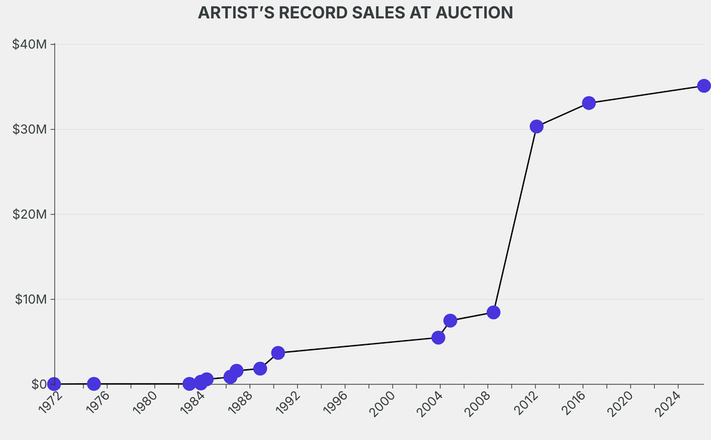 The sale beat the artist’s previous auction record by $2.02m, a 6% rise.