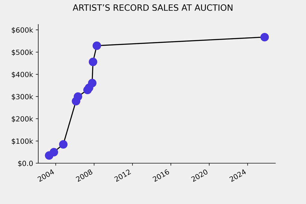 The sale beat the artist’s previous auction record by $38,600, a 7% rise. The previous record was set by Cuzco Children (1948), which sold for $529,000 at Christie's on April 11, 2008.