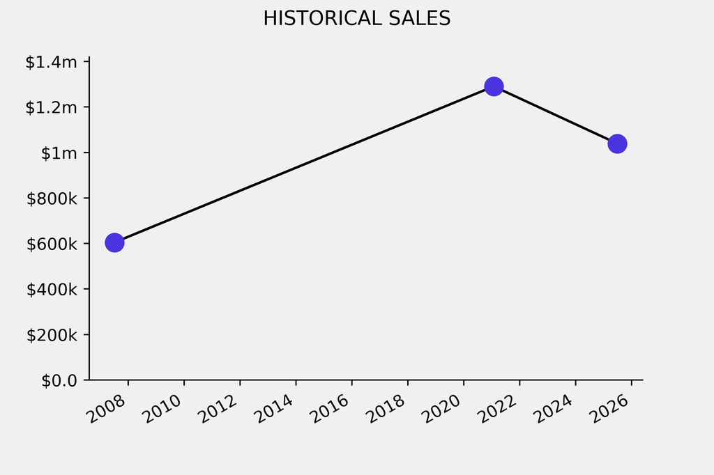 The sale was below the previous auction result by $251,600, realizing a 19% negative return. It last sold at auction in 2021 for $1.29m at Sotheby's.