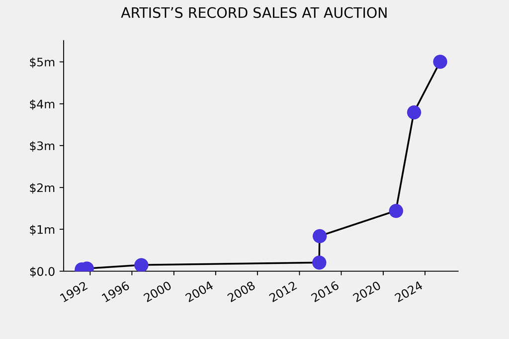 The artist’s previous auction record was set by the same work, hammered at $3.8m at Desa Unicum on December 08, 2022.