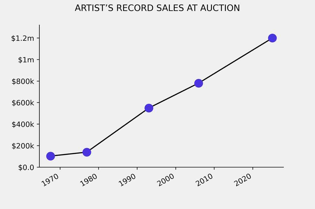 The sale beat the artist’s previous auction record by $419,300, a 53% rise.
