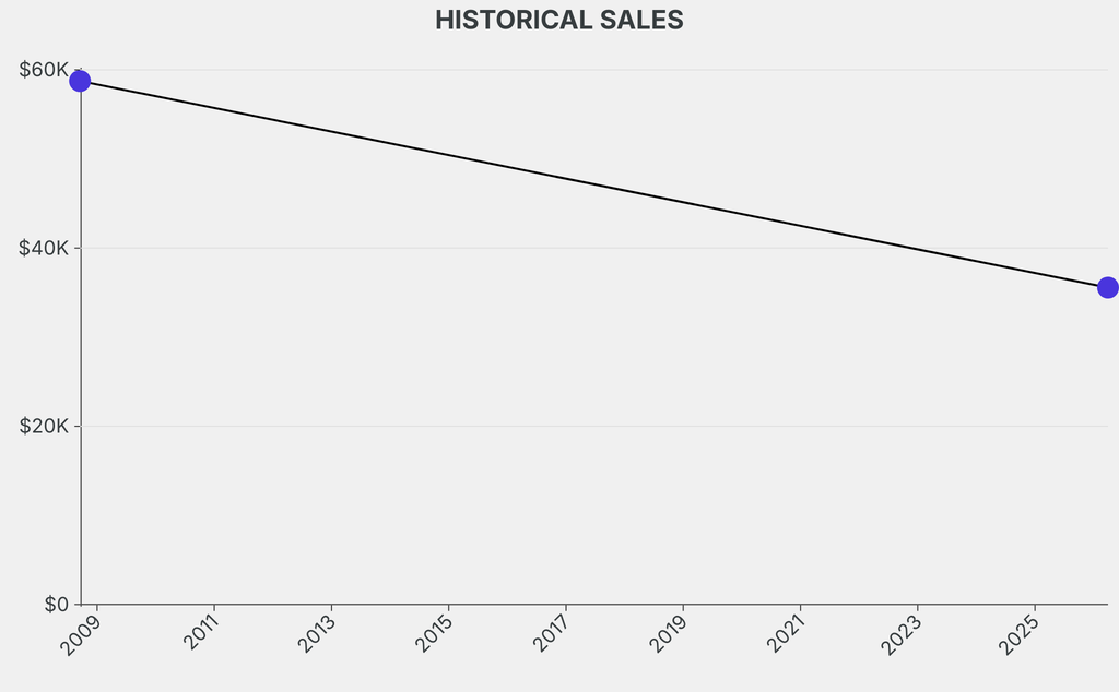 The sale was below the previous auction result by $23,200, realizing a 39% negative return. It last sold at auction in 2008 for $58,800 at Christie's.