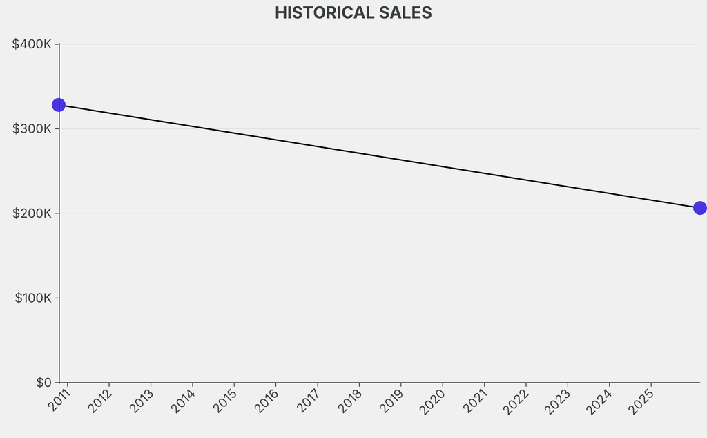 The sale was below the previous auction result by $121,800, realizing a 37% negative return. It last sold at auction in 2010 for $328,200 at Sotheby's.