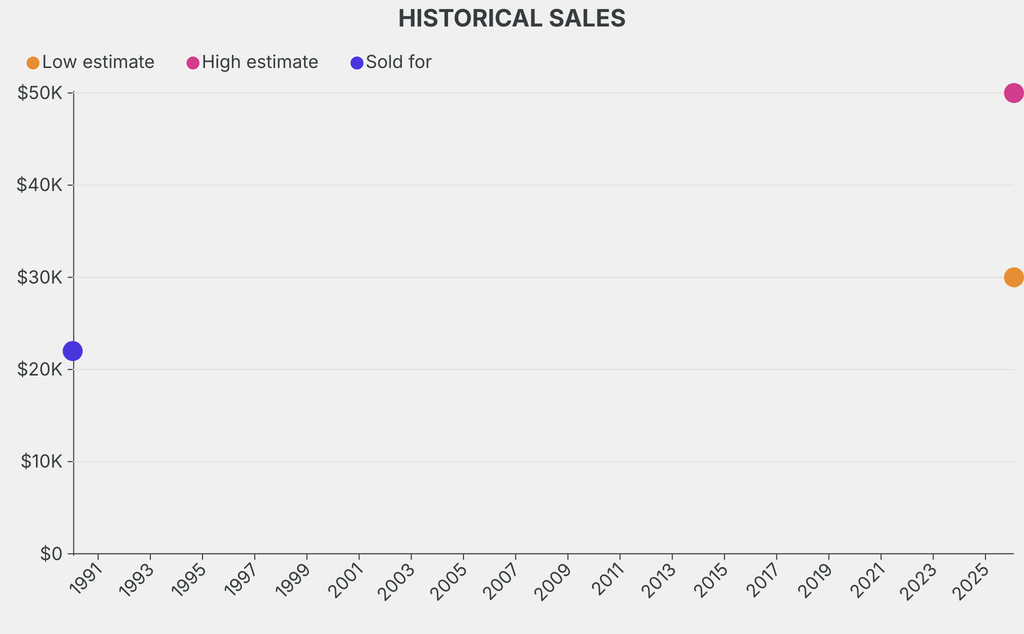 It last sold at auction in 1990 for $22,000 at Christie's.