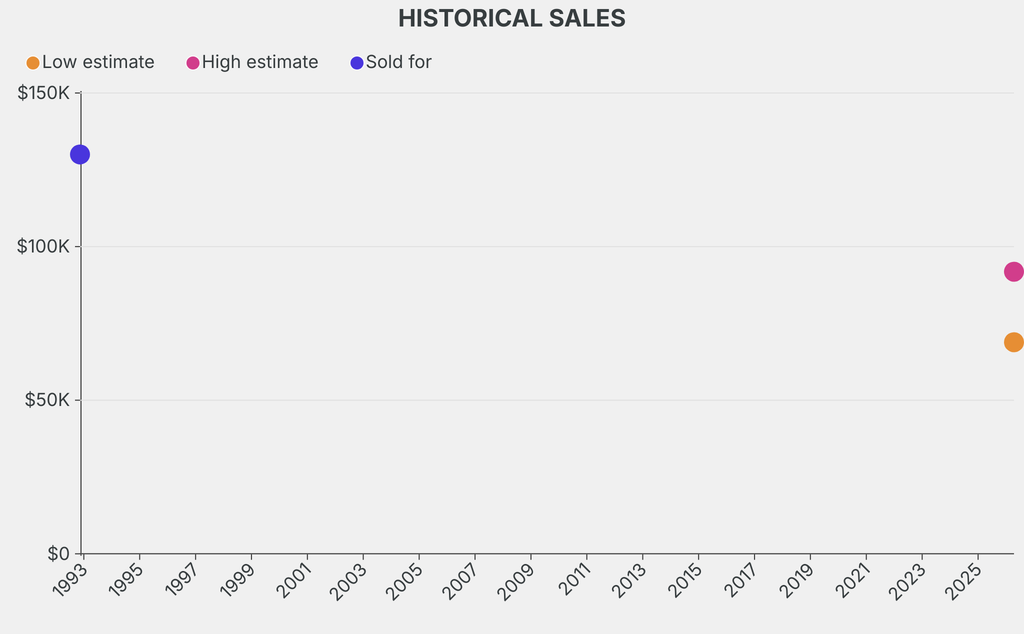 It last sold at auction in 1992 for $130,000 at Christie's.