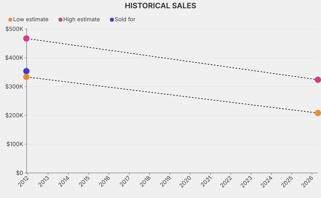 It last sold at auction in 2011 for $353,700 at Christie's. The current low estimate is 37% lower than its previous low estimate of $333,700.