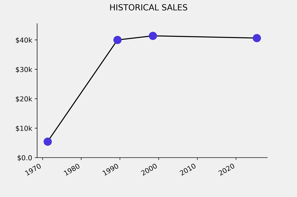 The sale was below the previous auction result by $757, realizing a 1% negative return. It last sold at auction in 1998 for $41,400 at Christie's.