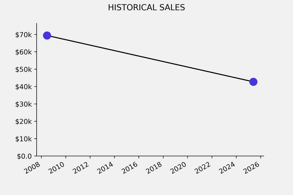 The sale was below the previous auction result by $26,700, realizing a 38% negative return. It last sold at auction in 2008 for $69,400 at Christie's.