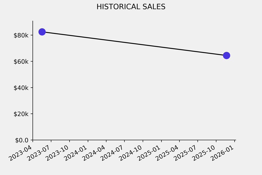 The sale was below the previous auction result by $18,100, realizing a 21% negative return. It last sold at auction in 2023 for $82,500 at Phillips.