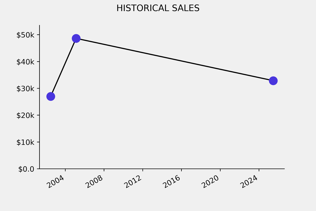The sale was below the previous auction result by $15,800, realizing a 32% negative return. It last sold at auction in 2005 for $48,600 at Christie's.
