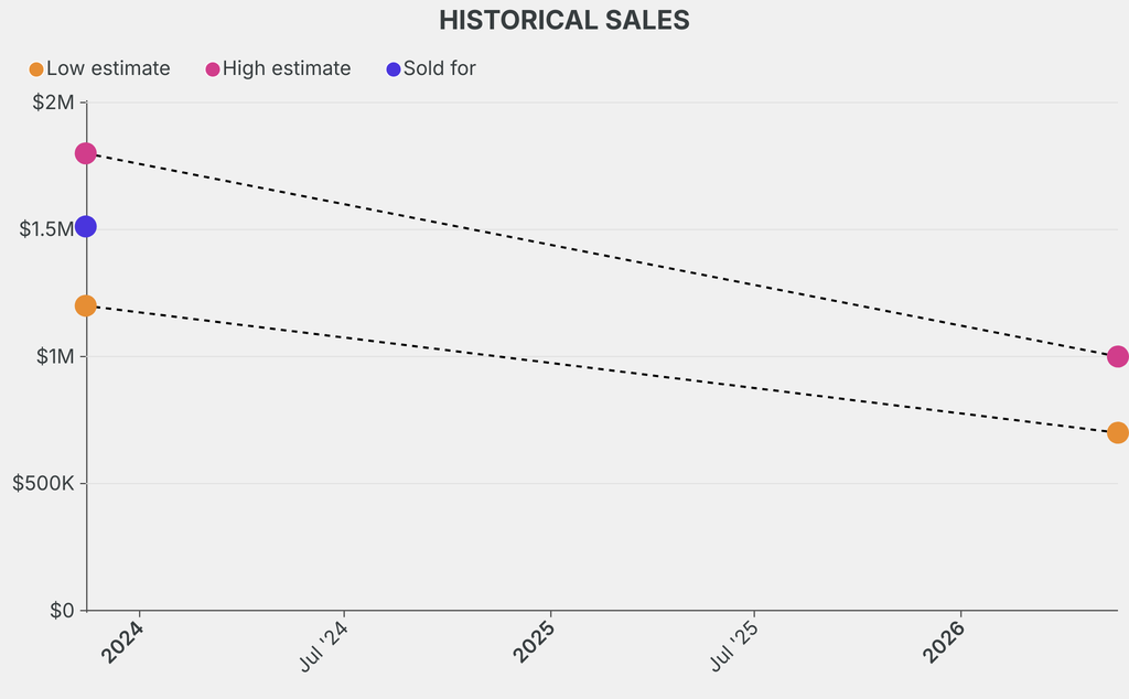It last sold at auction in 2023 for $1.51m at Sotheby's. The current low estimate is 41% lower than its previous low estimate of $1.2m.