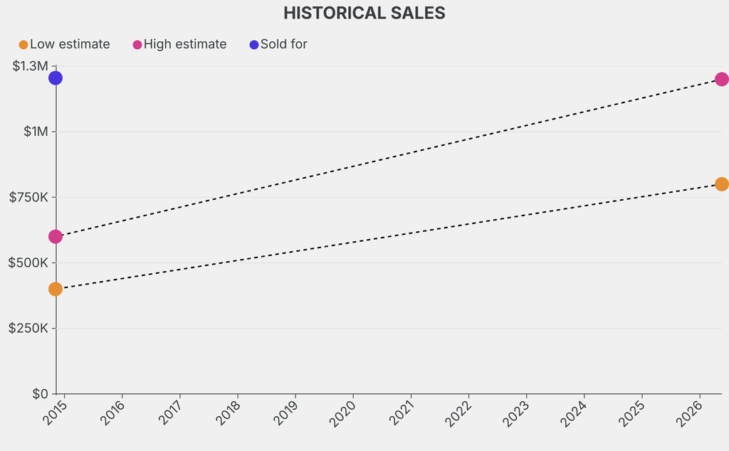 It last sold at auction in 2014 for $1.21m at Christie's. The current low estimate is 100% higher than its previous low estimate of $400,000.