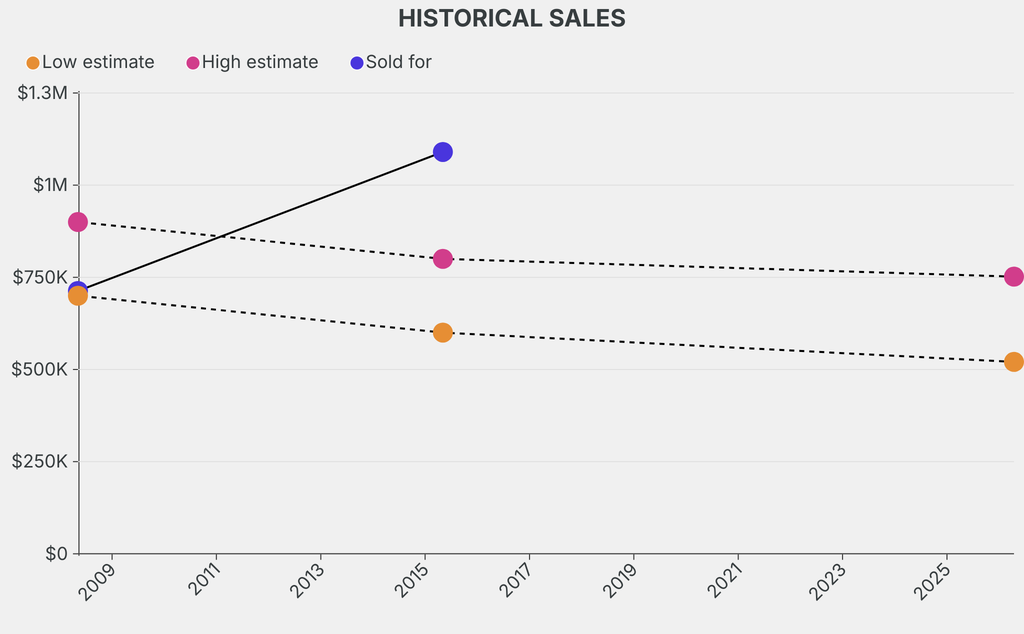 It last sold at auction in 2015 for $1.09m at Sotheby's. The current low estimate is 13% lower than its previous low estimate of $600,000.