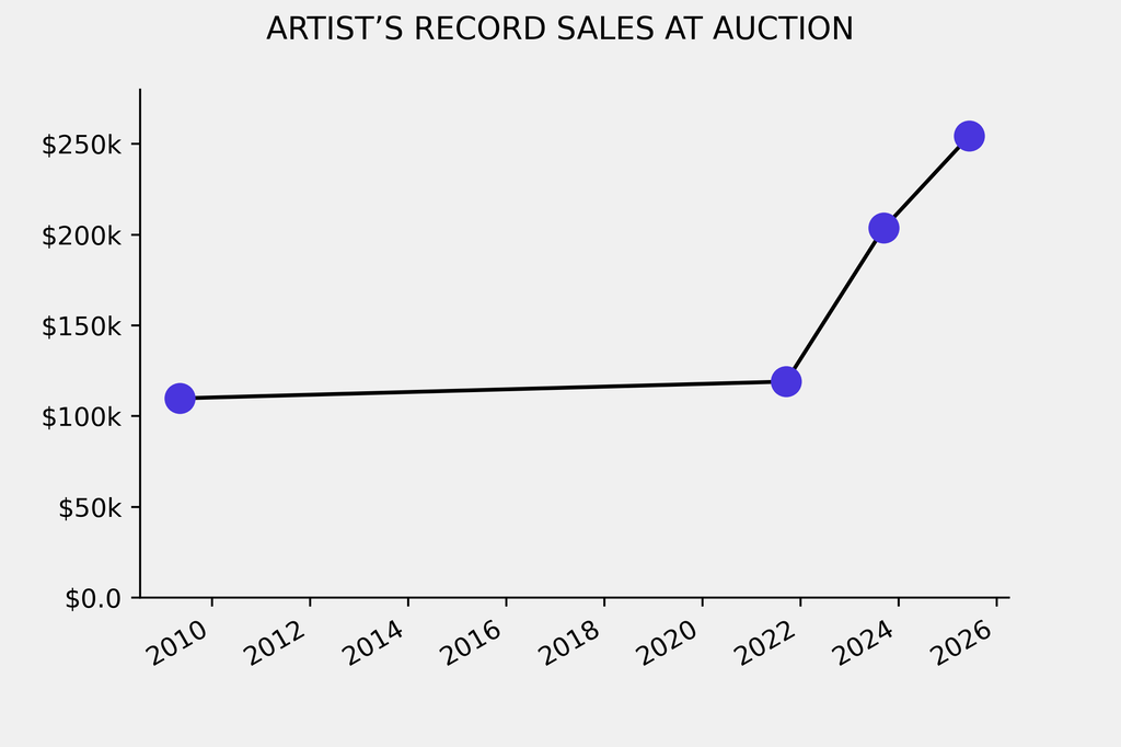 The sale beat Register's previous auction record by $50,800, a 24% rise. The previous record was set by Late Afternoon Light (1994), which sold for $203,700 at Bonhams on September 13, 2023. The work had been traded once in the past.