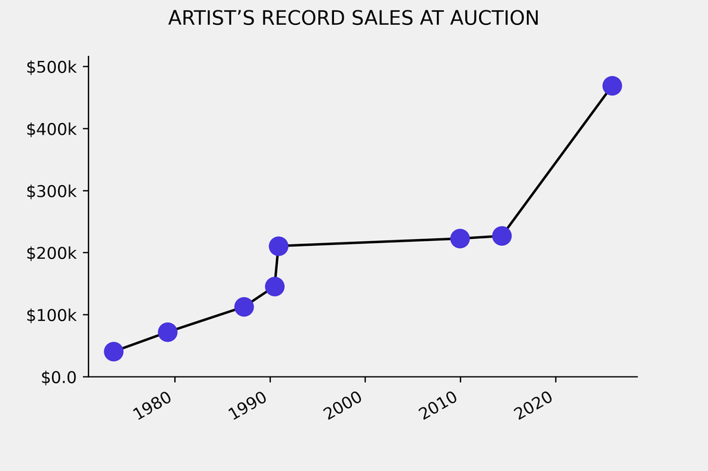 The sale beat the artist’s previous auction record by $242,200, a 100% rise.