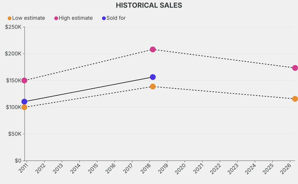 It last sold at auction in 2018 for $156,400 at Christie's. The current low estimate is 16% lower than its previous low estimate of $138,700.