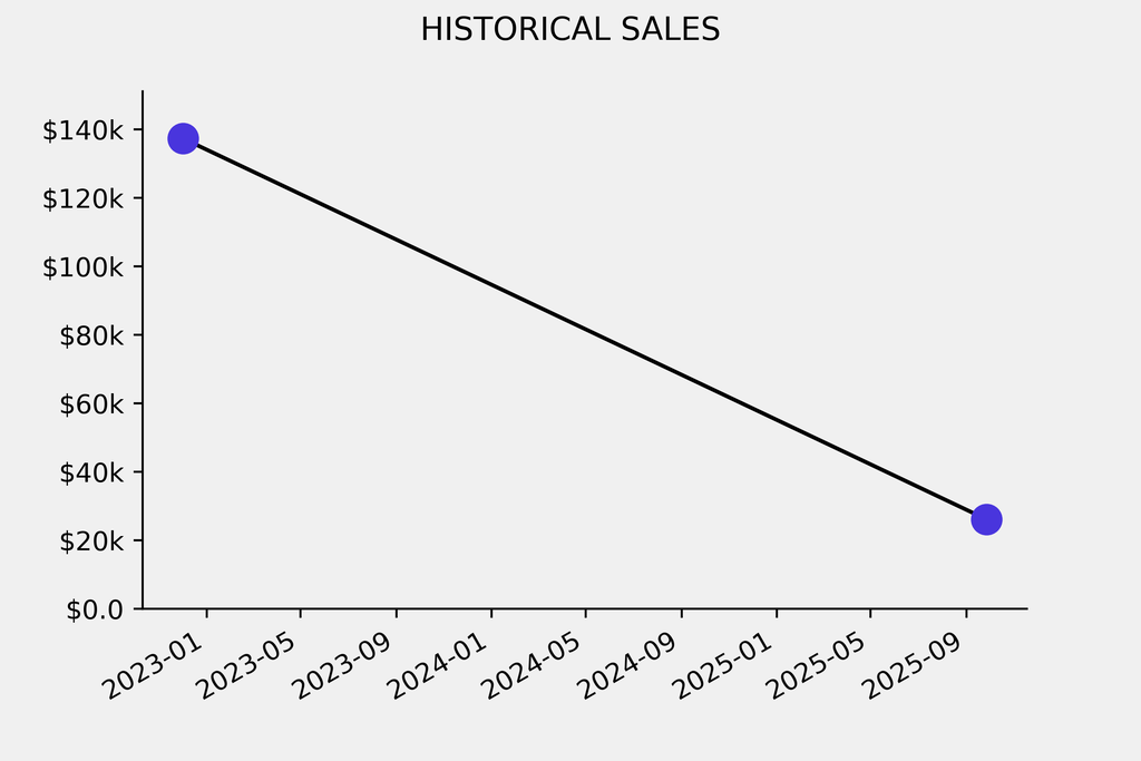 The sale was below the previous auction result by $111,200, realizing a 80% negative return. It last sold at auction in 2022 for $137,300 at Christie's.