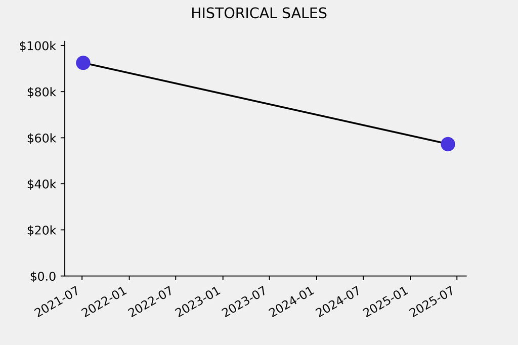 The sale was below the previous auction result by $35,200, realizing a 38% negative return. It last sold at auction in 2021 for $92,500 at Artcurial.