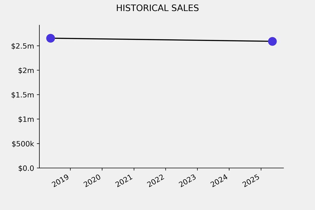 The sale was below the previous auction result by $64,000, realizing a 2% negative return. It last sold at auction in 2018 for $2.65m at Sotheby's.