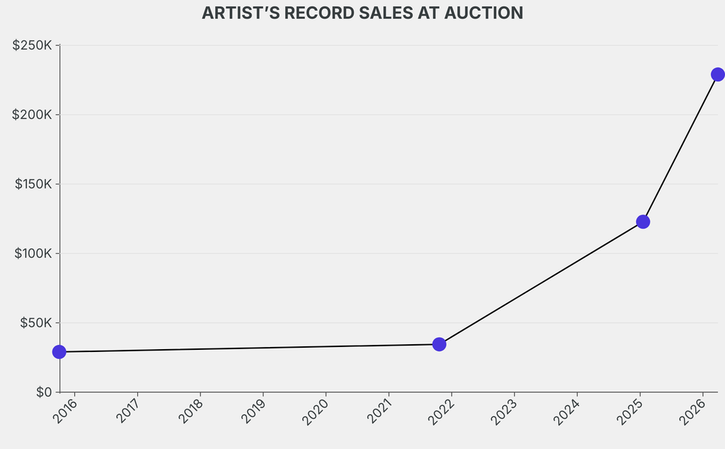 The sale beat the artist’s previous auction record by $106,100, a 86% rise.