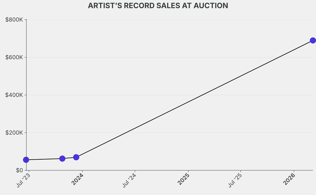 The sale beat the artist’s previous auction record by $620,300, a 800% rise.
