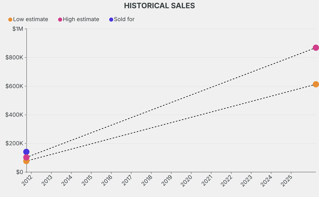 It last sold at auction in 2011 for $141,200 at Sotheby's. The current low estimate is 695% higher than its previous low estimate of $77,000.