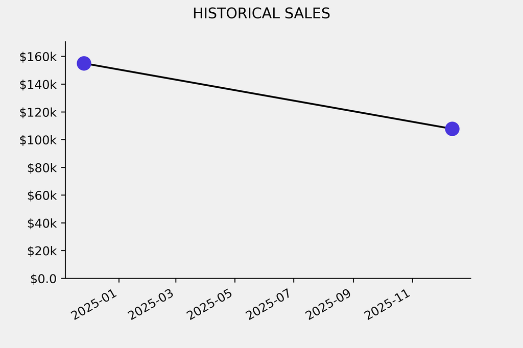 The sale was below the previous auction result by $47,300, realizing a 30% negative return. It last sold at auction in 2024 for $155,100 at Phillips.