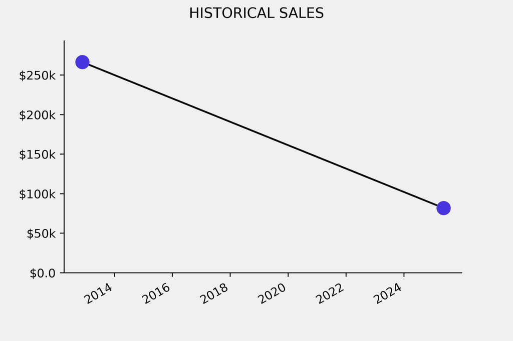 The sale was below the previous auction result by $184,600, realizing a 69% negative return. It last sold at auction in 2012 for $266,500 at Phillips de Pury.