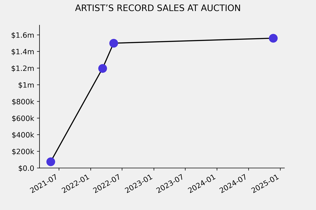 The sale beat the artist’s previous auction record by $60,000, a 4% rise.