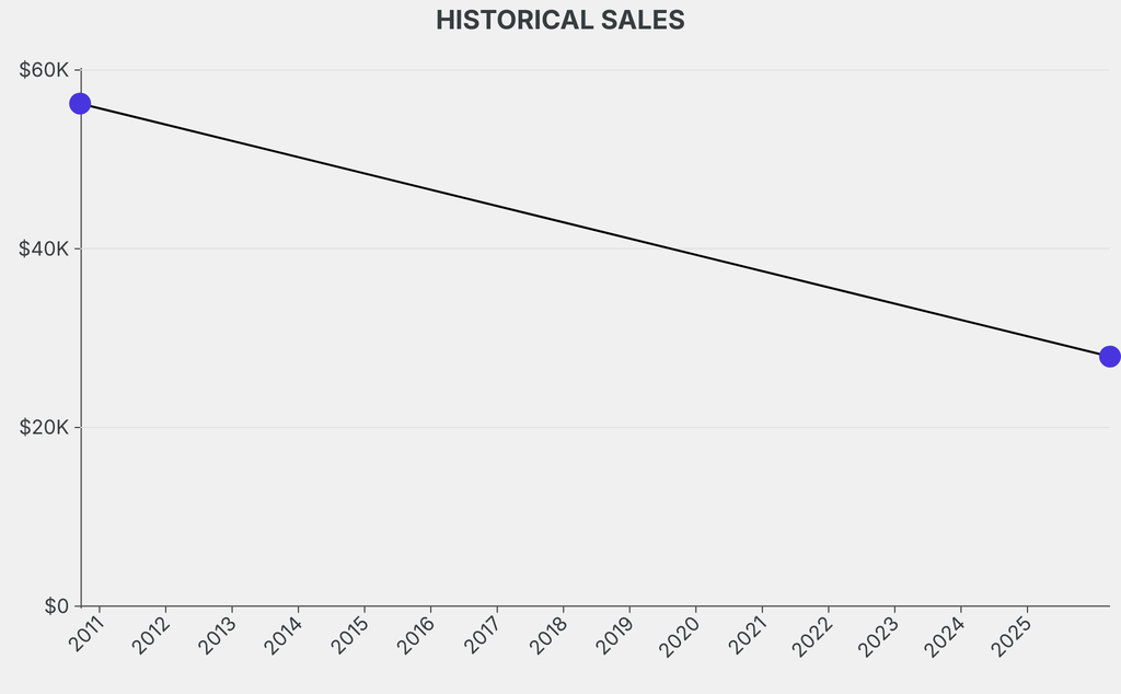 The sale was below the previous auction result by $28,300, realizing a 50% negative return. It last sold at auction in 2010 for $56,200 at Sotheby's.