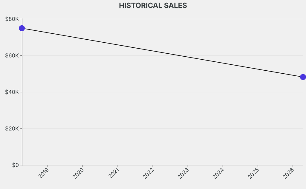 The sale was below the previous auction result by $26,700, realizing a 35% negative return. It last sold at auction in 2018 for $75,000 at Christie's.
