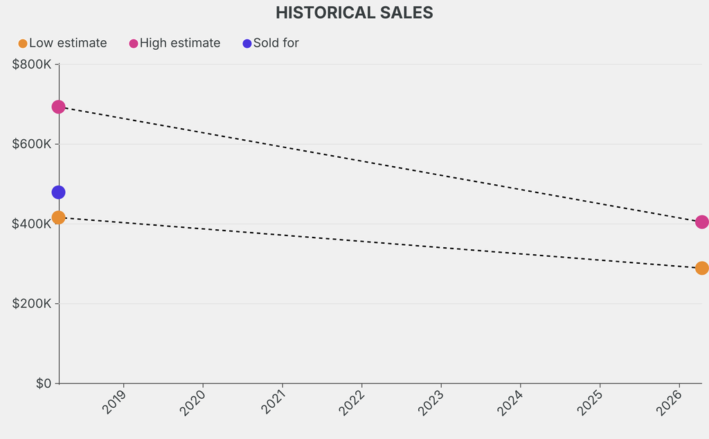 It last sold at auction in 2018 for $479,400 at Christie's. The current low estimate is 30% lower than its previous low estimate of $416,100.