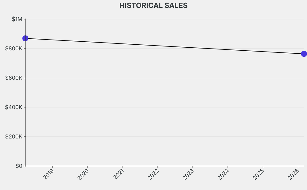The sale was below the previous auction result by $105,900, realizing a 12% negative return. It last sold at auction in 2018 for $869,400 at Christie's.