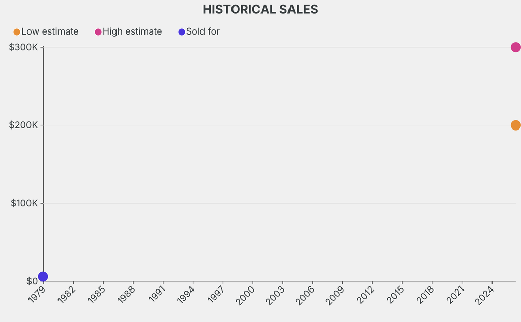It last sold at auction in 1978 for $6,000 at Christie's.