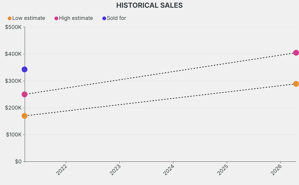 It last sold at auction in 2021 for $342,700 at Bonhams. The current low estimate is 70% higher than its previous low estimate of $170,000.