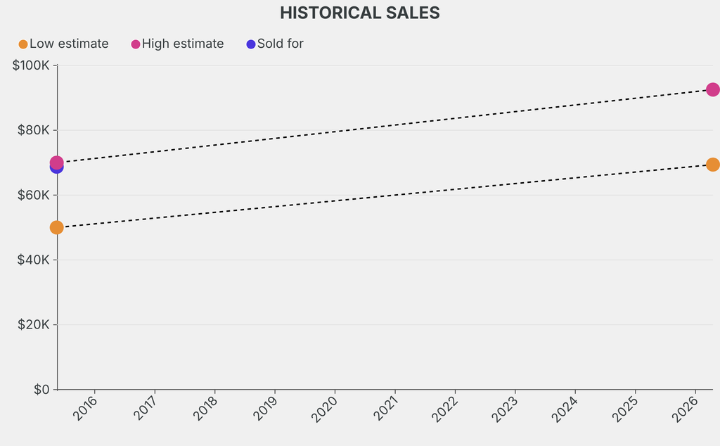 It last sold at auction in 2015 for $68,800 at Christie's. The current low estimate is 38% higher than its previous low estimate of $50,000.
