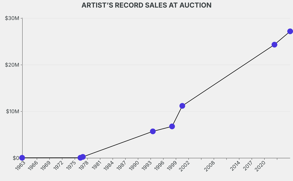 The previous record was set by A nude man (after Masaccio) and two figures behind him (Undated), which sold for $24.35m at Christie's on May 18, 2022. The work had been traded 5 times in the past.