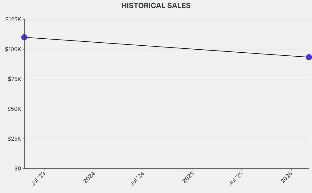 The sale was below the previous auction result by $16,700, realizing a 15% negative return. It last sold at auction in 2023 for $110,100 at Sotheby's.