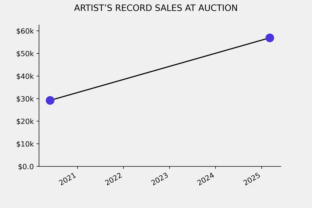 The previous record was set by The Near and Elsewhere (2009), which sold for $29,200 at Christie's Online on May 28, 2020. The work had not been traded before.