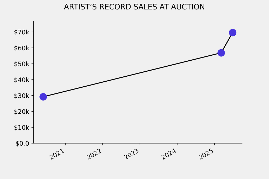 The previous record was set by Day Tripper (2020), which sold for $56,900 at Christie's on March 06, 2025. The work had not been traded before.