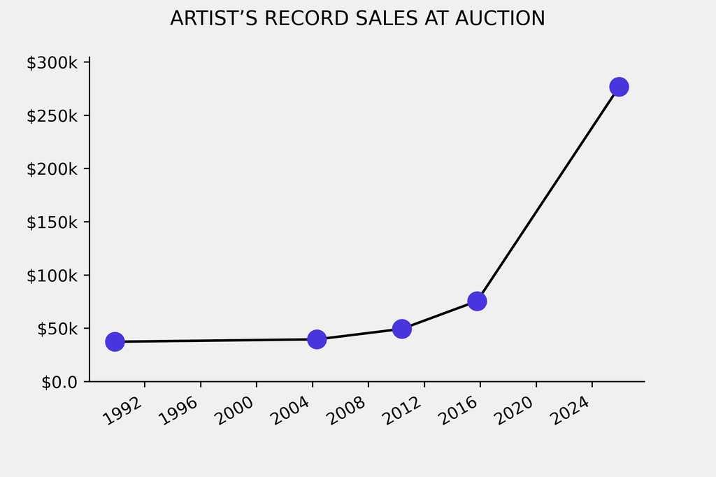 The sale beat the artist’s previous auction record by $201,300, a 250% rise.