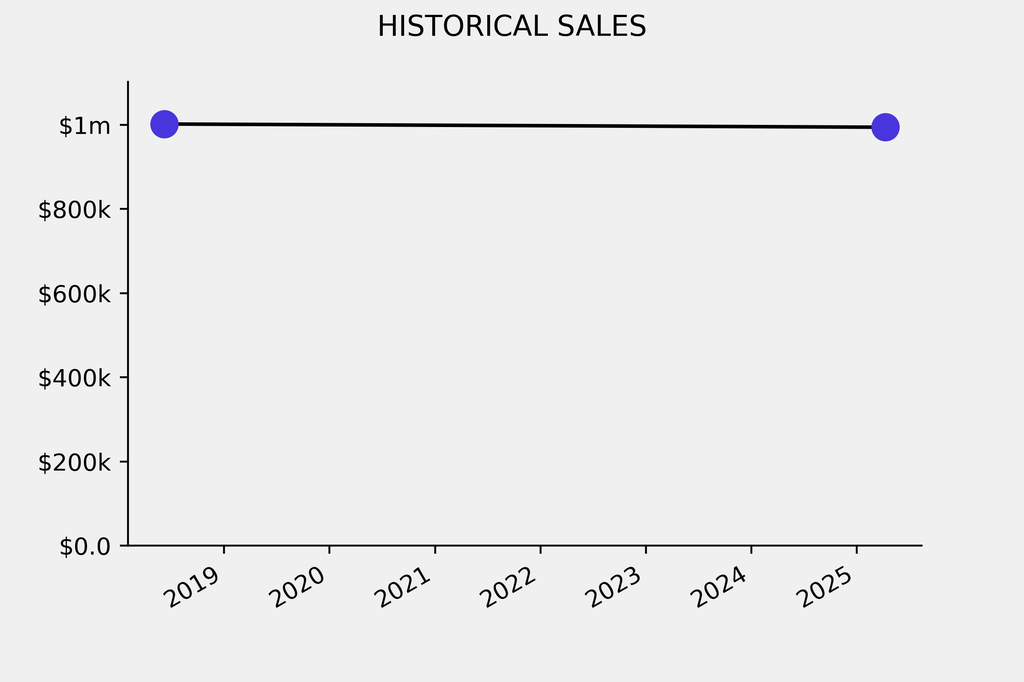The sale was below the previous auction result by $7,666, realizing a 0% negative return. It last sold at auction in 2018 for $1m at Christie's.