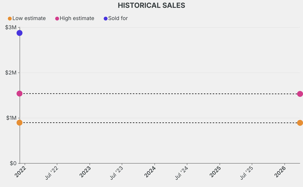 It last sold at auction in 2021 for $2.88m at Christie's. The current low estimate is 0.5% lower than its previous low estimate of $898,600.