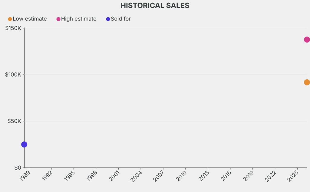 It last sold at auction in 1988 for $25,000 at Sotheby's.