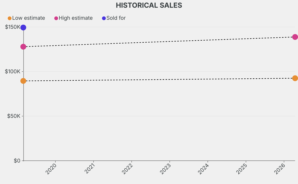 It last sold at auction in 2019 for $149,400 at Sotheby's. The current low estimate is 3% higher than its previous low estimate of $89,500.