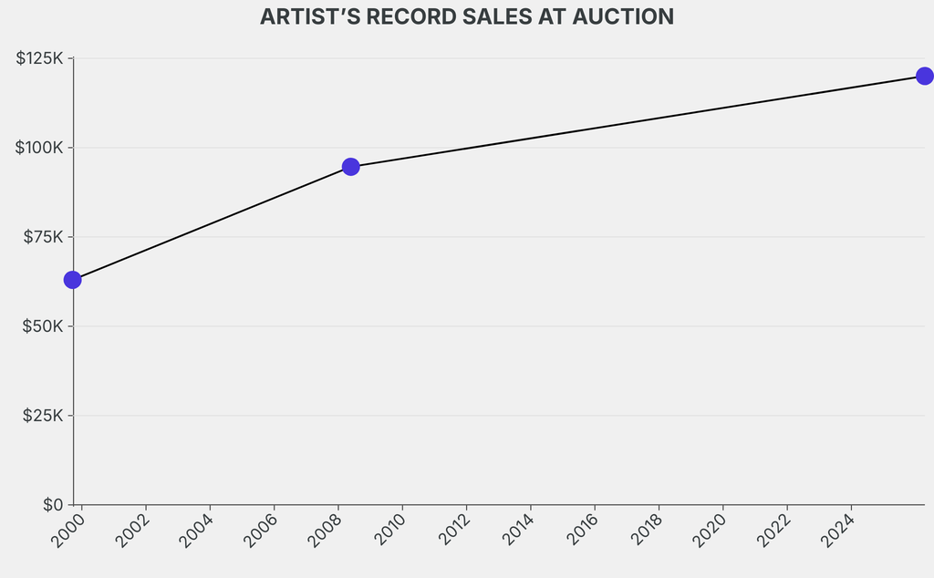 The sale beat the artist’s previous auction record by $25,400, a 26% rise.