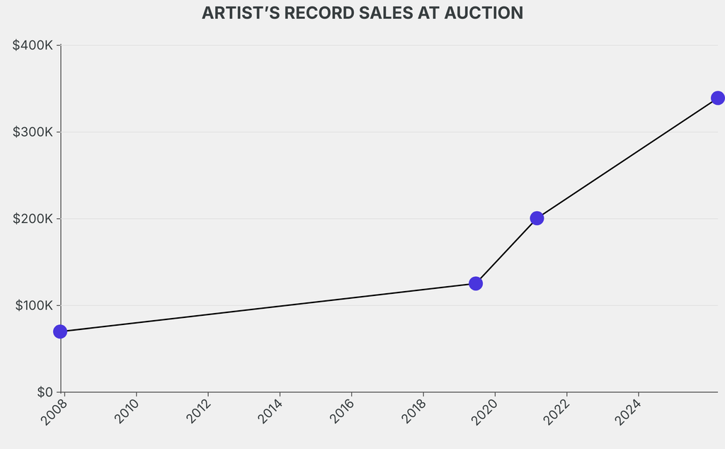 The sale beat the artist’s previous auction record by $138,600, a 69% rise.